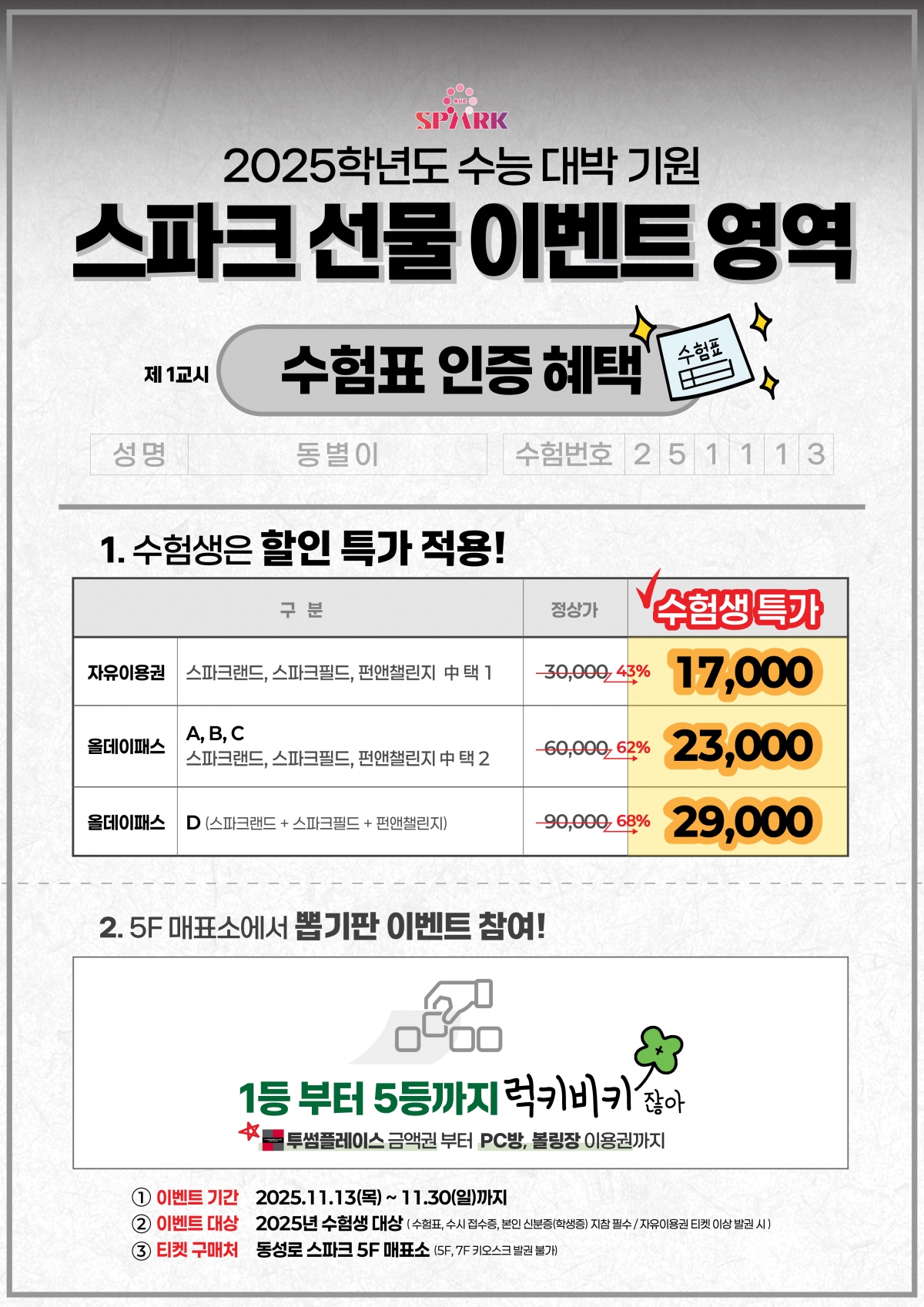 스파크가 수험생 여러분께 선물 같은 혜택을 준비했어요
