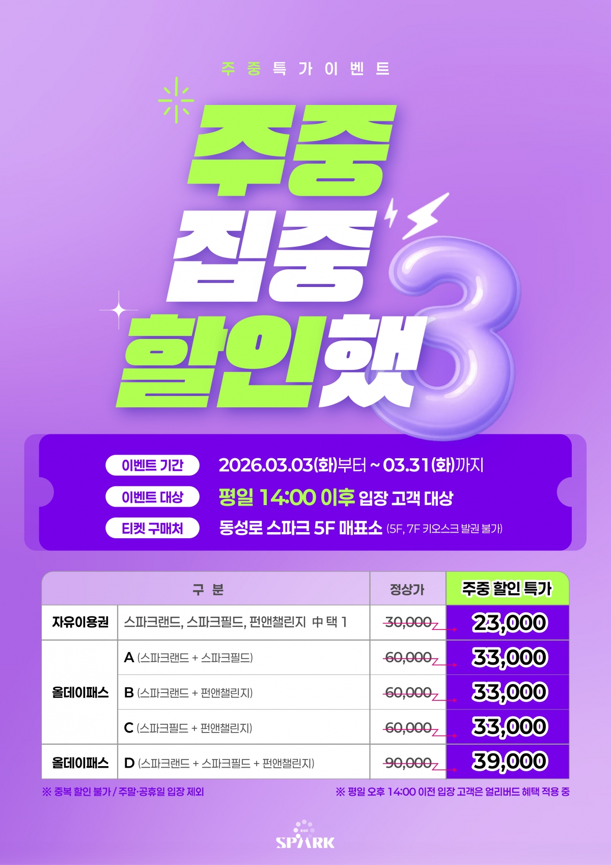 3월 한정 주중 특가 OPEN